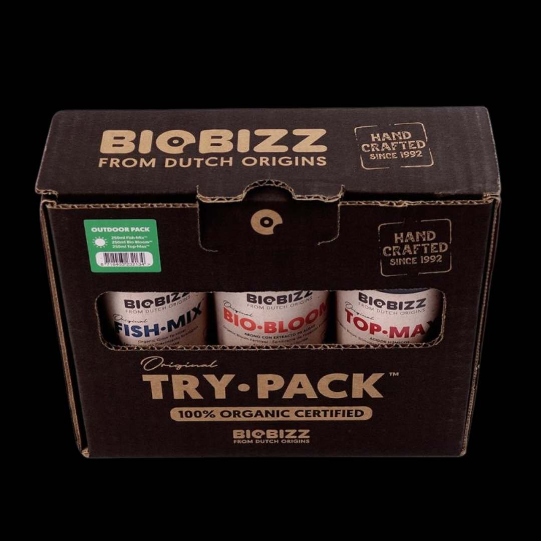 Mit dem BioBizz Trypack Outdoor erhältst du ein durchdachtes Dünger-Set, das speziell für den erfolgreichen Anbau im Freien entwickelt wurde. Ob im Garten, auf der Terrasse oder auf dem Balkon – dieses Set versorgt deine Pflanzen vom Start bis zur Ernte mit allem, was sie brauchen.